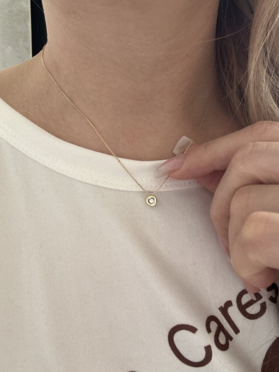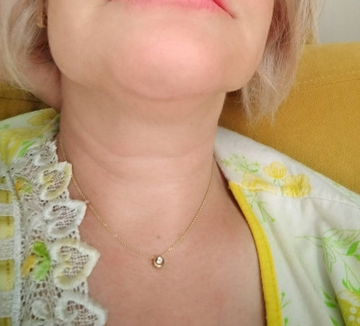 Купила эту подвеску с маленьким бриллиантиком на тонкую цепочку. Ношу, не снимая. За счёт удачного дизайна брюлик выглядит больше, чем есть на самом деле. Красота!