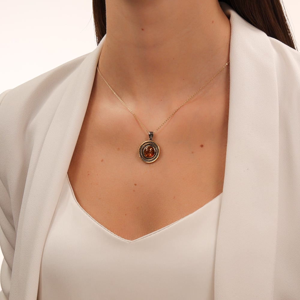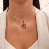 Серебряная подвеска с янтарями природными