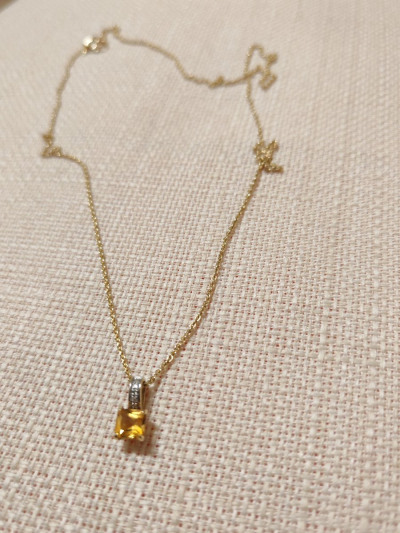 Очень красивая, стильная подвеска. Нежная дорожка из бриллиантов и яркий желтый цетрин в желтом золоте.