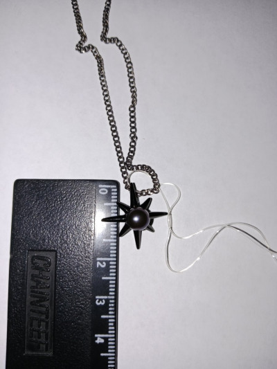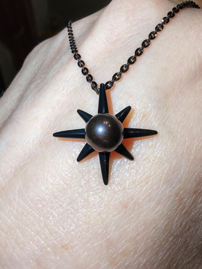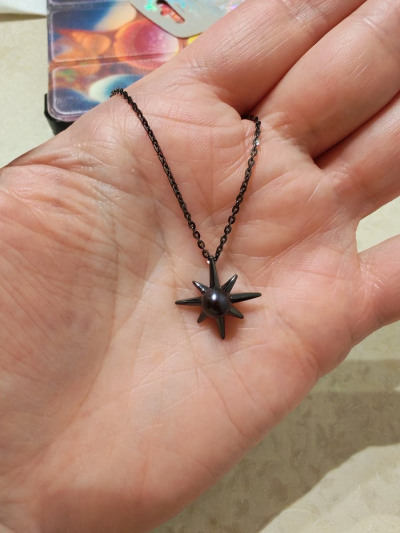 Брала на подарок в комплекте с цепочкой. Очень интересное акцентное украшение. Чёрный жемчуг - это особый шарм. Выглядит очень стильно.