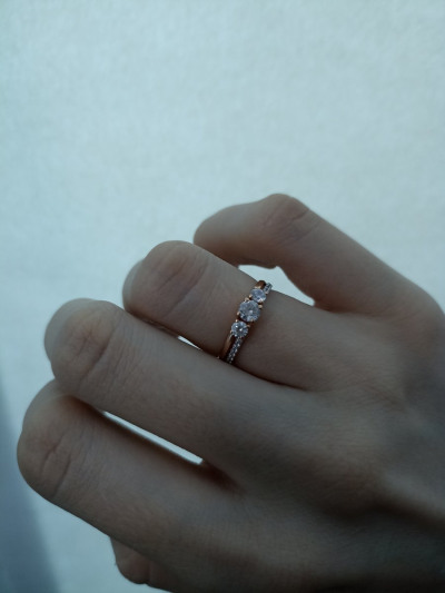 Очень очень изящное🥰, аккуратное колечко, 3 камня по центру придают очень красивое мерцание. Как увидела его в магазине, сразу понравилось 😻