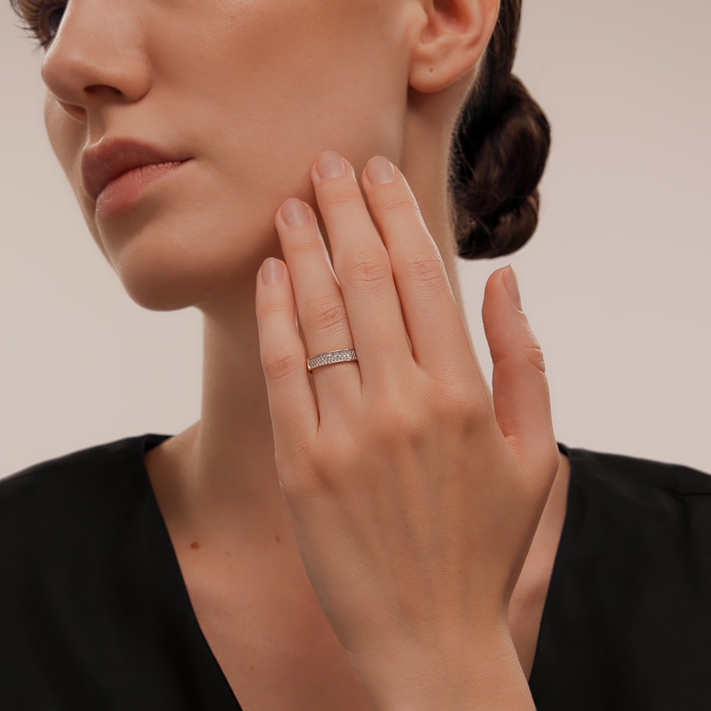 Кольцо с 55 бриллиантами, 0.14 карат, огранка круг 17 граней, цвет 2, чистота 2, тип огранки Б;