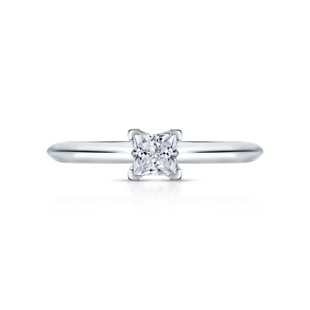 Кольцо с 1 бриллиантом природным, 0.23 карат, огранка принцесса 65 граней, цвет 3, чистота 6, тип огранки А;