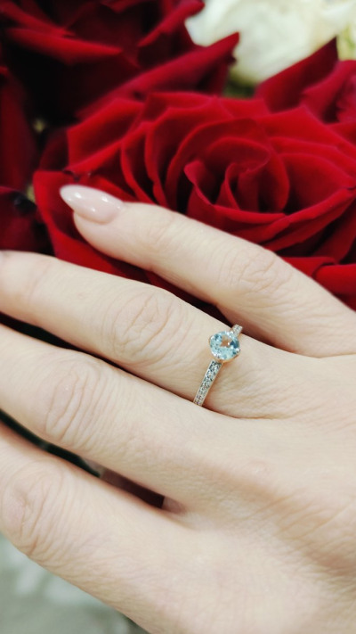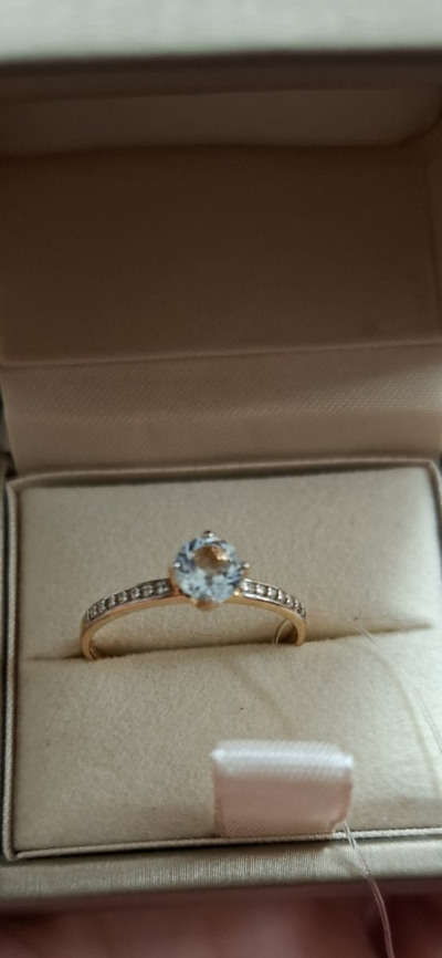 Купила это кольцо спонтанно, приехав выкупать совсем другое кольцо) Очень нежное! Топаз нежно голубой, цвет неба! Продавец замечательный!