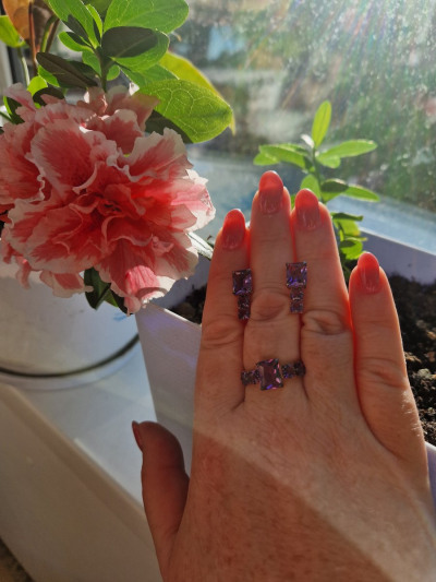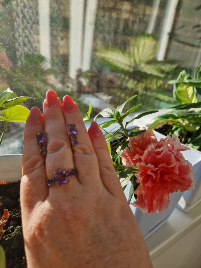 В редких случаях характеристики украшения или упаковка могут иметь отличия от представленных на фото или в описании.Кольцо с 4 аметистами природными, тип огранки Б;