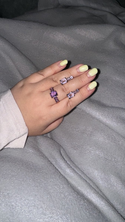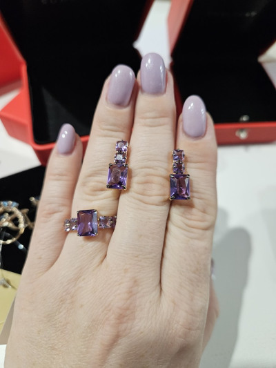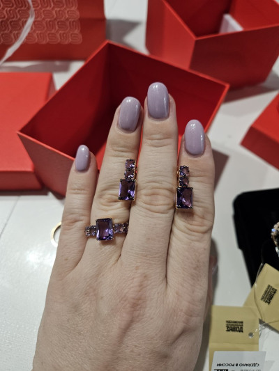 Красивое кольцо, аметисты насыщенного цвета серьги из этого комплекта бледнее