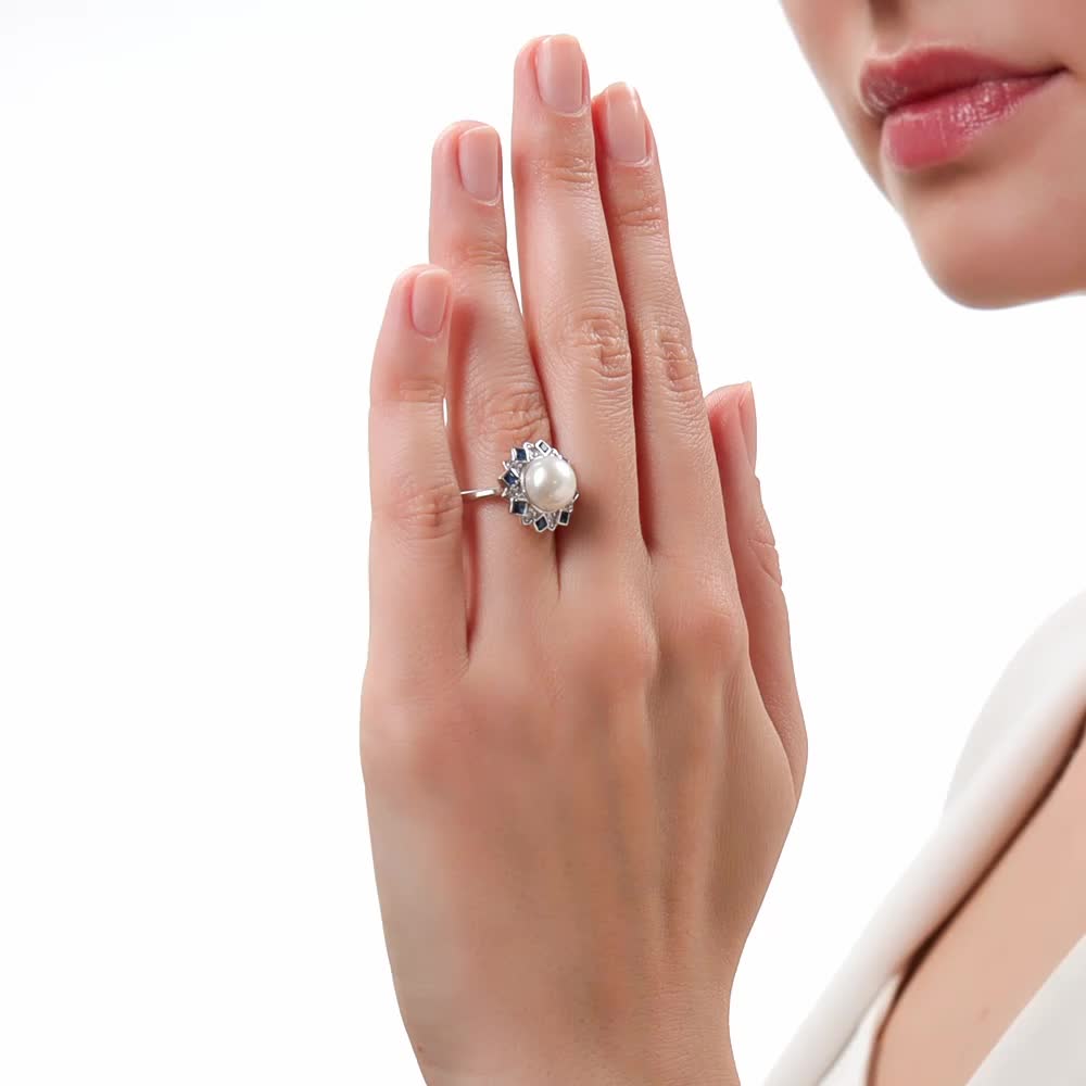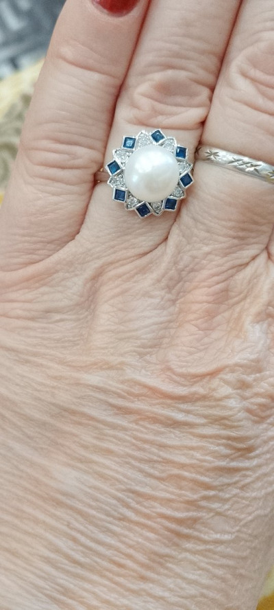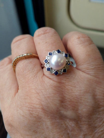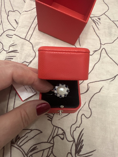 Очень красивое кольцо, жемчуг в сочетании с белыми и синими фианитами смотрится необыкновенно красиво!