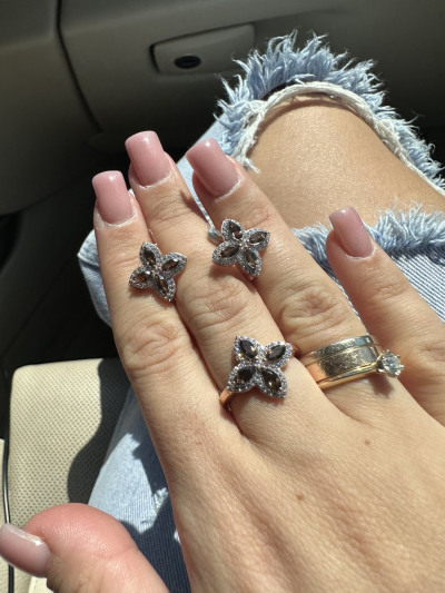 Очень удобное , красивое колечко ! В комплекте еще взяла кулон и серьги , можно носить каждый день )