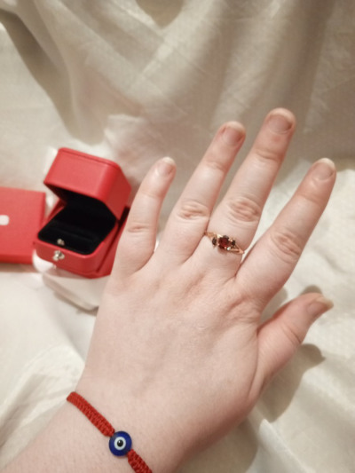 В редких случаях характеристики украшения или упаковка могут иметь отличия от представленных на фото или в описании.Кольцо с 1 гранатом природным, тип огранки Б;