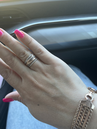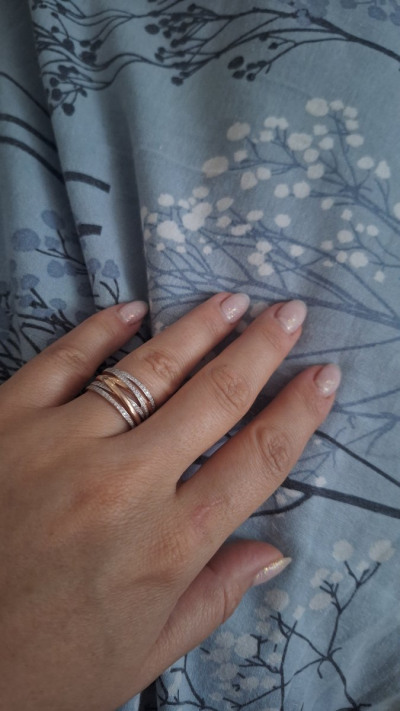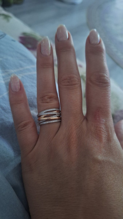 Очень понравилось! Красивое колечко, подарок мужа. Выглядит нежно , но довольно тяжёлое и широкое.