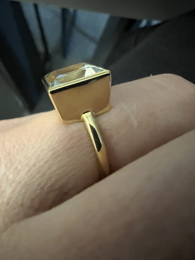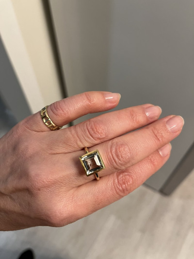 Мне очень нравится эта модель кольца и серёжек.Была возможность купить похожую модель на известной торговой площадке,однако выбор пал именно на эти. Лаконично, стильно, ничего лишнего в виде дешёвых стекляшек, только прозрачный светло-зелёный натуральный камень в обрамлении жёлтого металла.И ещё,спасибо производителю за достаточно широкую шинку.Здесь акцент идёт на сам камень,и было бы не очень правильно,если б шинка была слишком широкой,: тут всё в меру, всё гармонично.