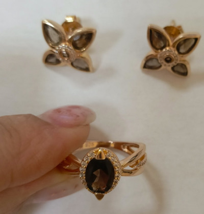 Очень красивое кольцо, купила вместе с серьгами, они не являются комплектом, но хорошо сочетаются, довольна своим выбором.