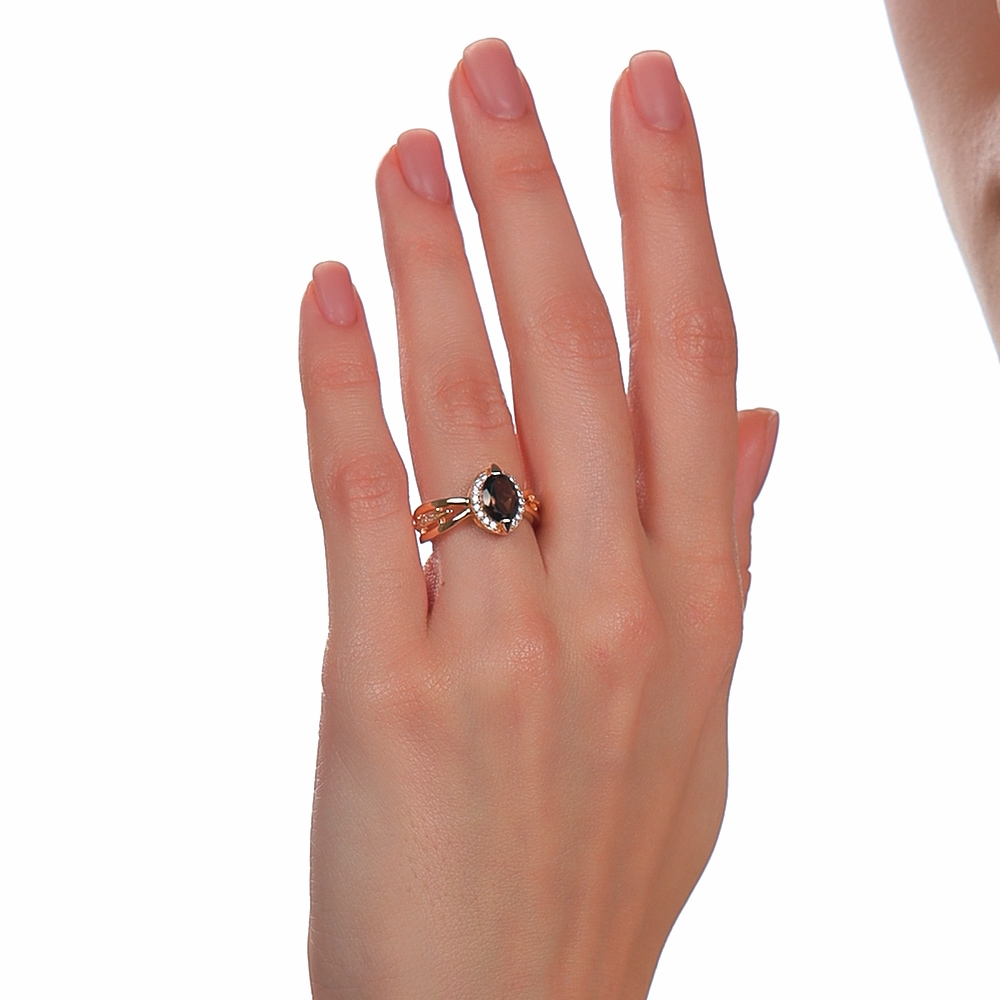 Кольцо с 1 кварцем дымчатым природным, 1.25 карат;