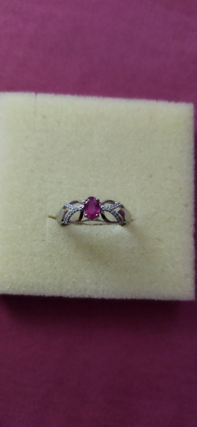 Интересный дизайн, натуральный рубин,смотрится как в белом золоте