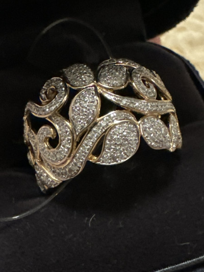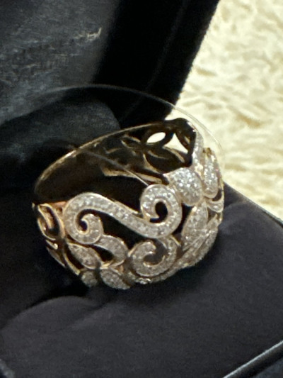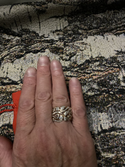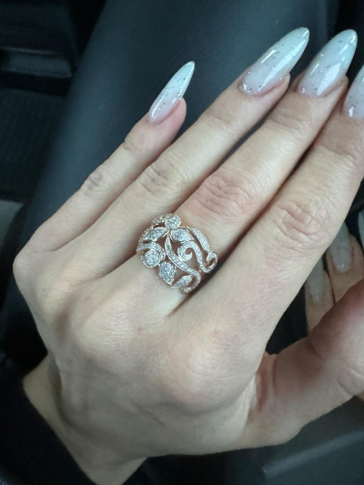 Долго на него смотрела, и вот - оно мое. Шикарное кольцо. Смотрится богато. Бриллианты переливаются на свету очень красиво.