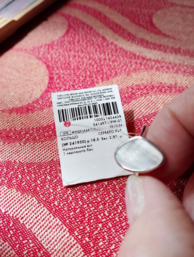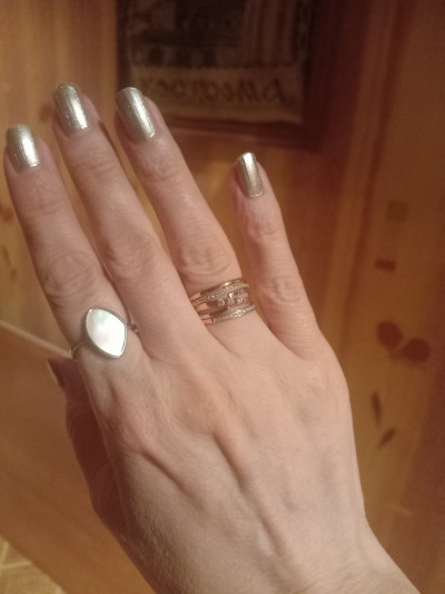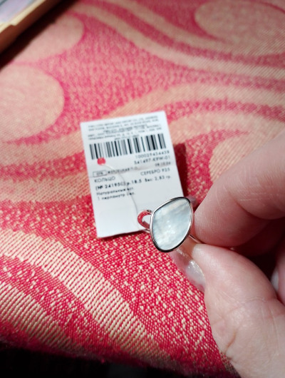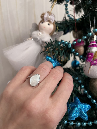 Нежное,красивое колечко 💍 с перламутром отлично смотрится на руке 😍 очень красиво переливается и блестит на солнце Очень довольна,что нашла в приложении и сразу влюбилась. 😍