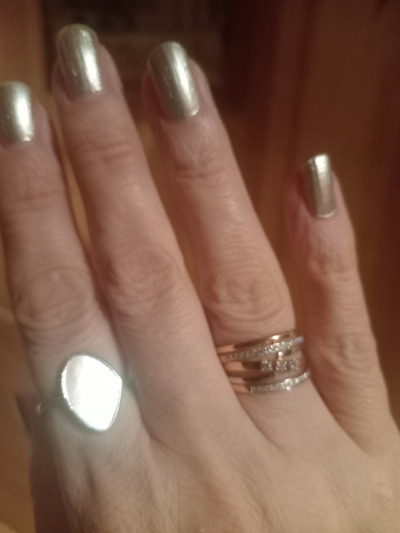 Любовь с первого взгляда,на сайте не передаёт всю красоту кольца,увидела в магазине на витрине и всё,я пропала,подкупило минимализм,простота,шикарный блеск и цвет перламутра,асимметрия, всё просто и изящно