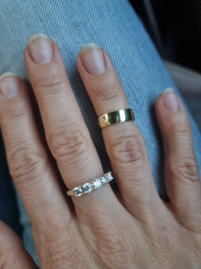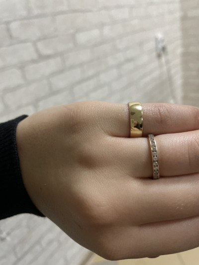 Давно хотела подобное кольцо на мизинец. Отлично подошло к аналогичным по дизайну серёжкам. Показалось, что маломерит на пол размера,наверное из-за широкой шинки. Выглядит как золото, даже если как в отзывах многие пишут пололота облезет, буду носить просто серебряное)
