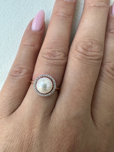 • Кольцо с 1 жемчуг культивированный , 3.014 карат; фианит;