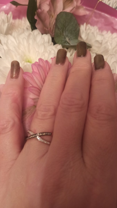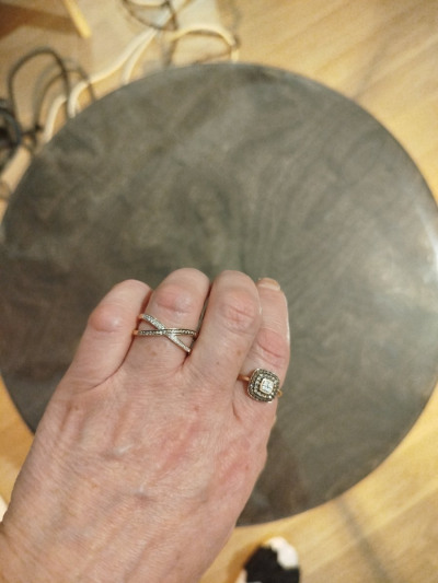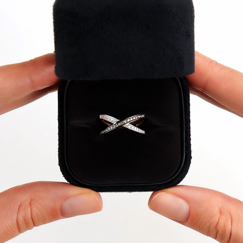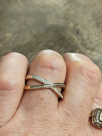 Колечко шикарное, нежное, бриллианты белые и коньячные сверкают, красота! Дизайн интересный, удобное. Заказала к нему в пару с такими же камнями
