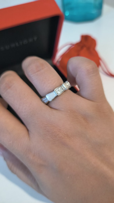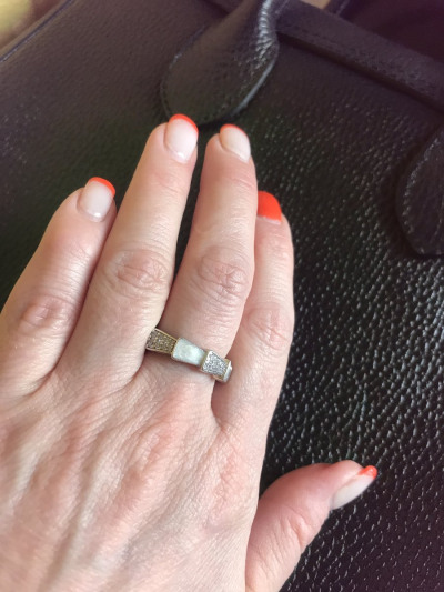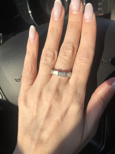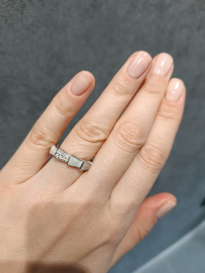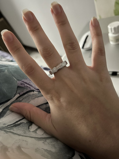 Кольцо массивное, из-за чего при покупке немного сомневалась, но на пальце выглядит очень красиво