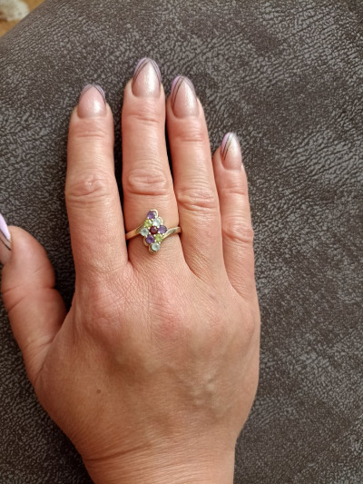 Серебряное кольцо с топазами природными, аметистами природными, хризолитами природными и родолит природными