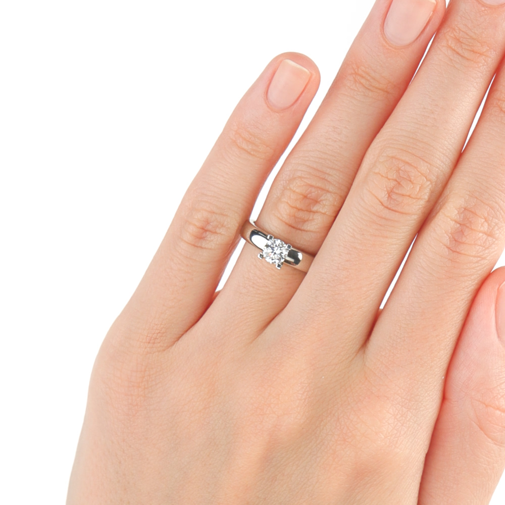 Кольцо с 1 бриллиантом природным, 0.5 карат, огранка круг 57 граней, цвет 3, чистота 6, тип огранки А;