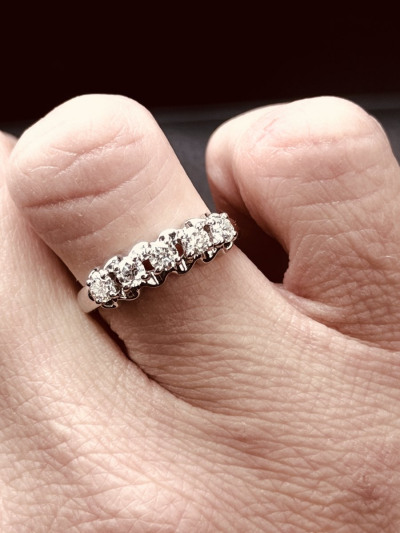 Подарок от любимого мужа на 20-летие свадьбы. Теперь это мое любимое колечко💍 Роскошное, бриллианты довольно заметные, сияют умопомрачительно. Пожалуй, одна из немногих самодостаточных дорожек, которую можно носить соло. В дополнение взяли серьги.
