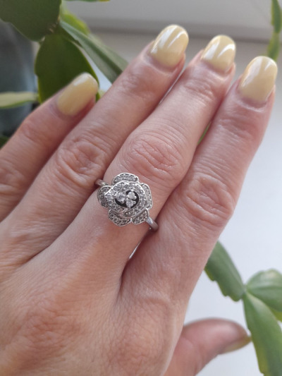 Колечко милое. Смотрится очень красиво. Выполнено в форме розы, очень оригинально!