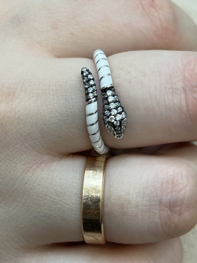 На самом деле думала в живую будет более простой вид, но колечко превзошло все ожидания. Даже можно подумать будто не эмаль,а керамика. Выглядит роскошно, тонко, достойная детализация. Рекомендую