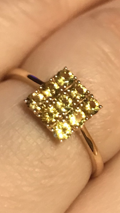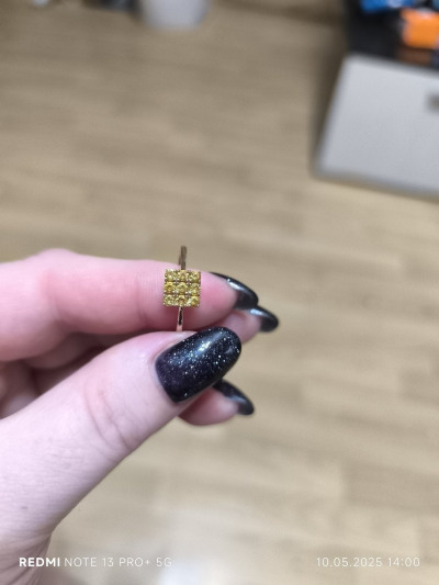 Кольцо тонкое,облегчённое. Камни отдают в зеленый. В магазине было не видно, только дома хорошо рассмотрела. С серьгами по цвету отличаются камни🥺