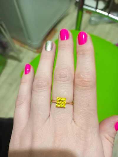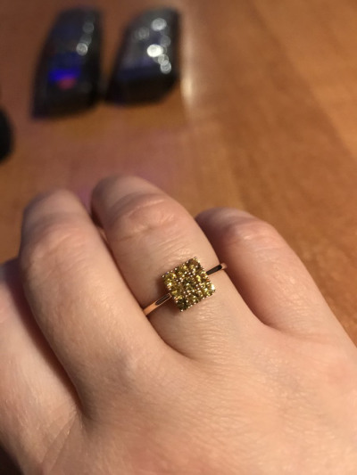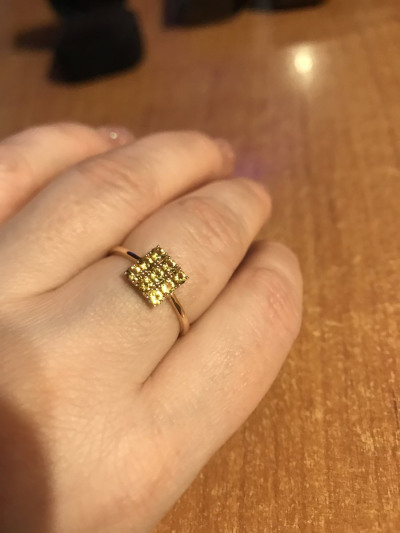 Стильное, яркое.Красиво играют камни, особенно в солнечных лучах.Миниатюрное,лёгкое на пальчике сидит комфортно.Единственный минус немного цепляет ткани,носить аккуратно.Покупкой довольна. Благодарю Санлайт.