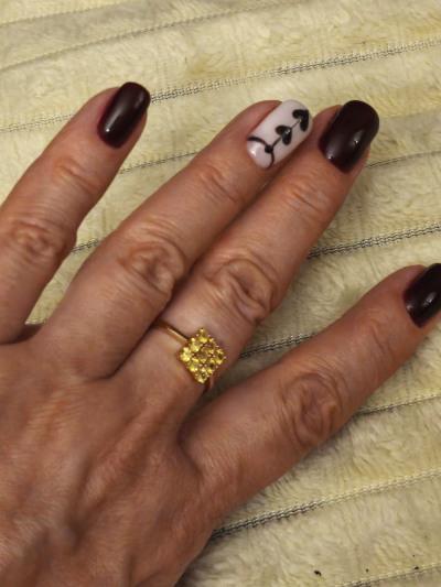 Кольцо тоненькое , но крепкое , камушки блестят и переливаются на солнце и при искусственном освещении . Кольцом довольна . Размер 18.5 .