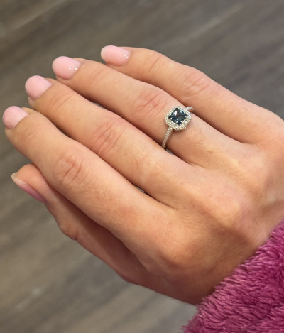 Кольцо красиво сверкает, переливается. В целом смотрится хорошо. Из минусов царапает соседние пальцы.