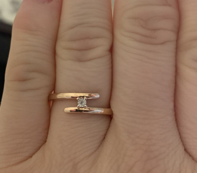 . Бриллиант маленький но сверкает очень красиво!!! Очень похоже на золото!