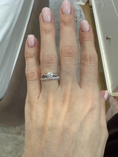Выбрала это кольцо, так как оно идеально подошло с кольцу с одиночным бриллиантом, камни не закрывают основной, при этом дополняют общий внешний вид, более крупные камни смотрятся менее выигрышно в этой паре. Надеюсь на надежную закрепку камней и пожизненную гарантию от производителя.