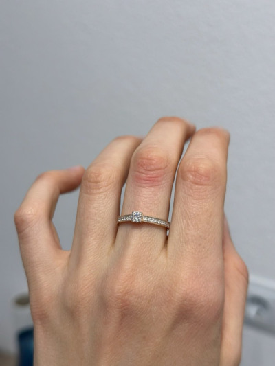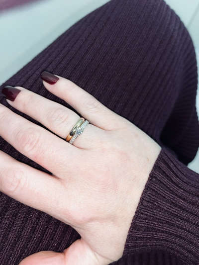 Долго присматривалась к кольцу с бриллиантами. Остановилась на нем. Бриллиант выращенный, что для меня плюс. Экологично. Камни играют так, что хочется разглядывать постоянно 😍💕