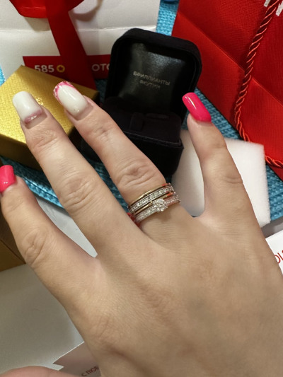 Колечко безумно нежное и красивое чем и покорило при встрече его на сайте. Но увидя его в живую, это были совершенно другие эмоции. Красивое переливание бриллиантов и блеск золота манит к себе, что и произошло в магазине г. Ялта. Безумно спасибо консультанту Анастасии за то что закрепили это чувство превосходным обслуживанием и упаковкой. Теперь это кольцо служит прекрасным напоминанием о чудесном времени на море с любимым человеком.