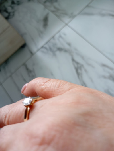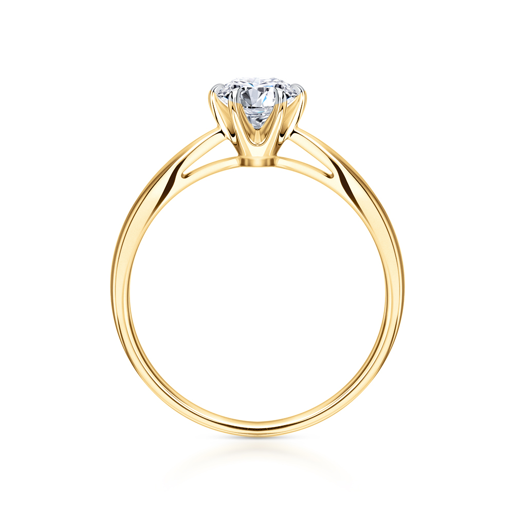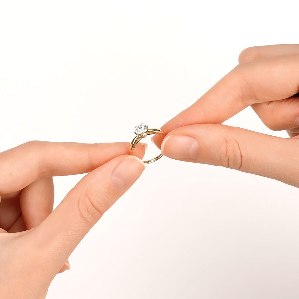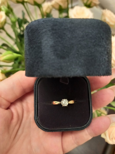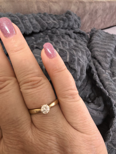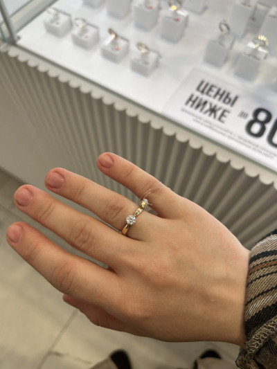 Очень подходит для предложения руки и сердца. Классическая форма с одним красивым камнем в центре и лимонным цветом металла. Смотрится элегантно