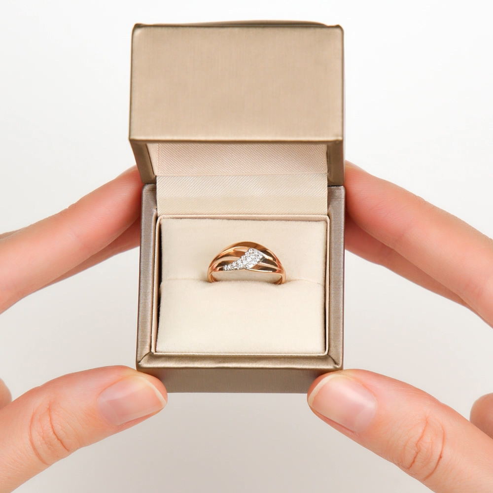 При покупке оказалось немного скромнее, по фото большое и шикарное. Хорошее колечко для молодой девушки. Обошлось совсем не дорого со всеми скидками и бонусами.