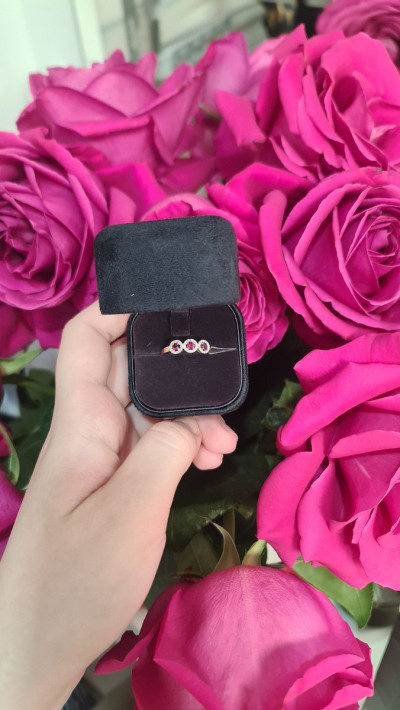 Родолиты очень красивые необычного оттенка - не розовый и не красный а глубокий вишневый. Обрамление бриллиантами добавляет изысканности. Кольцо хоть и не крупное а очень заметное и выигрышное. Жена в восторге!!!
