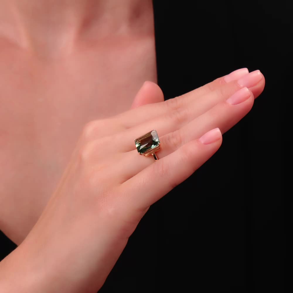 В редких случаях характеристики украшения или упаковка могут иметь отличия от представленных на фото или в описании.Кольцо с 1 празиолитом природным, тип огранки Б;