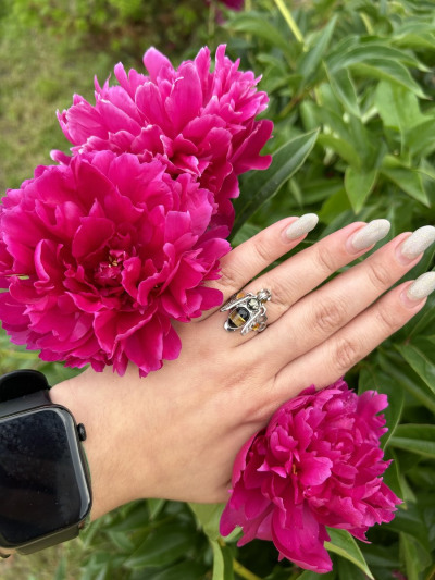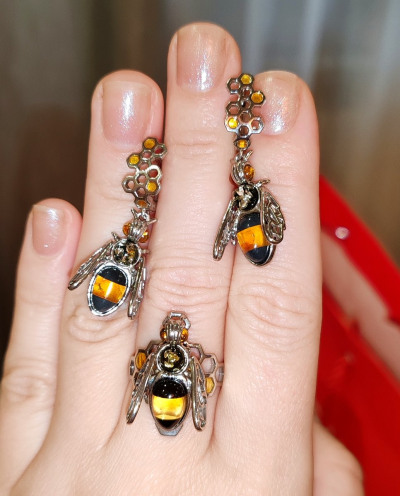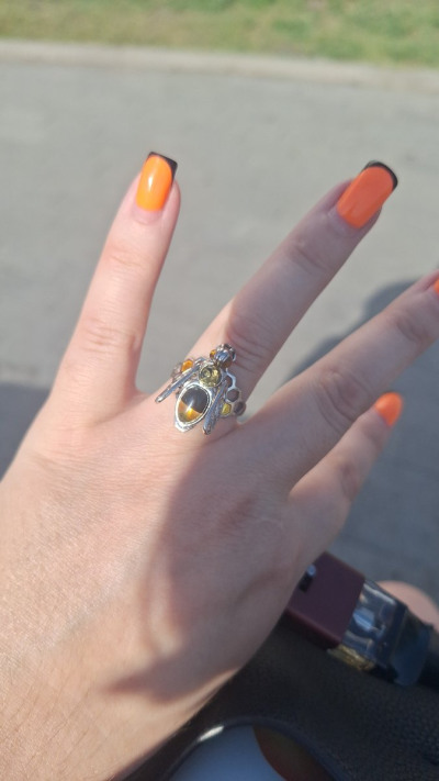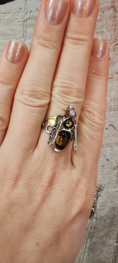 Необычное серебряное кольцо "Пчёлка" с янтарем. Изящная работа ювелиров и природная красота камня создают волшебное впечатление, кажется будто пчела живая, примостилась на пальчике отдахнуть от повседневной работы. Шикарное кольцо, очень рада видеть его в своей коллекции украшений от Санлайт. Рекомендую.
