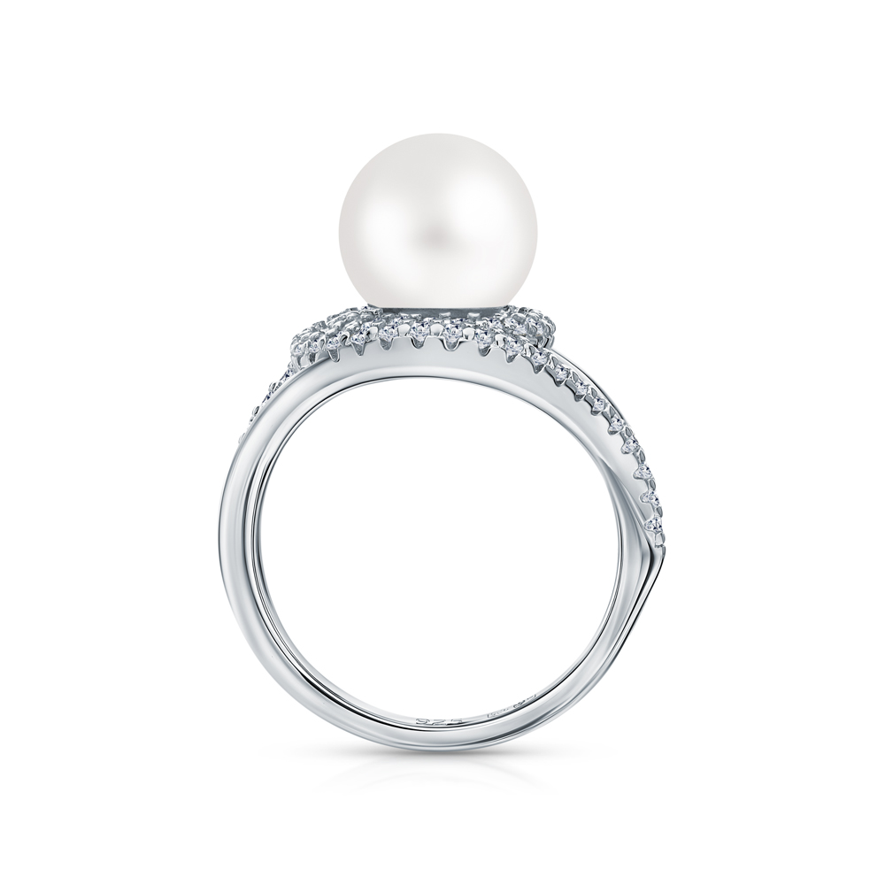 Серебряное кольцо с жемчугом и фианитами