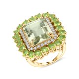 Серебряное кольцо с празиолит природными, топазами природными и хризолитами природными
