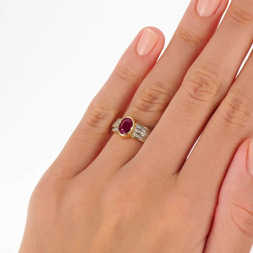 Золотое кольцо с бриллиантами природными и рубином природным