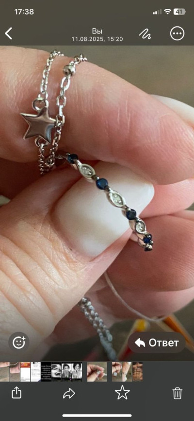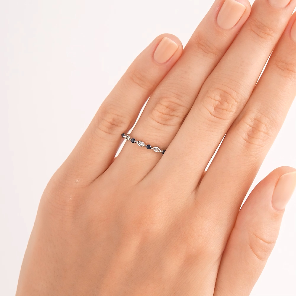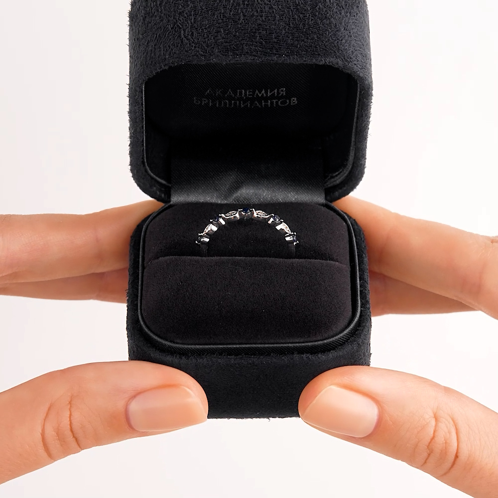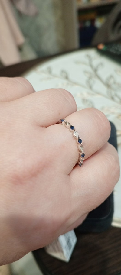 Нежное колечко с синими сапфирами, небольшими, но заметными. Хорошо сочетается с другими небольшими колечками. 👍