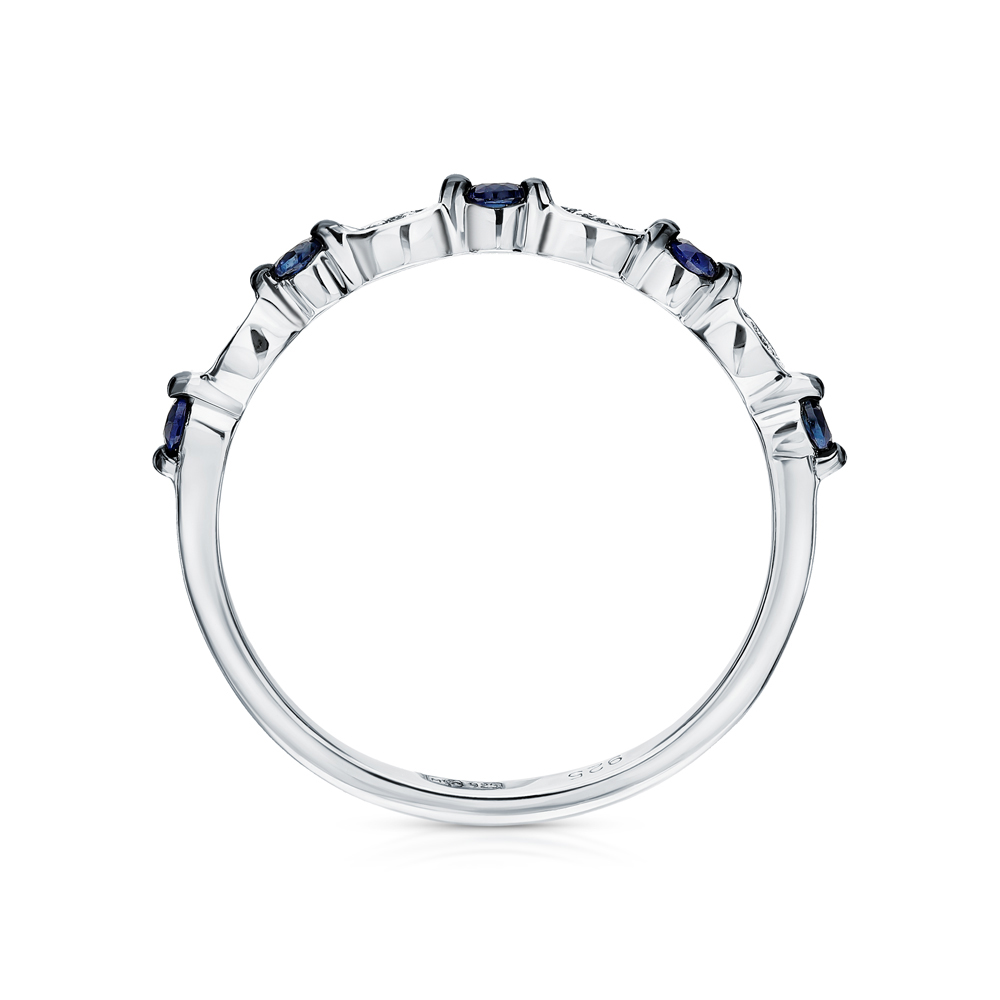 Серебряное кольцо с бриллиантами природными и сапфирами природными