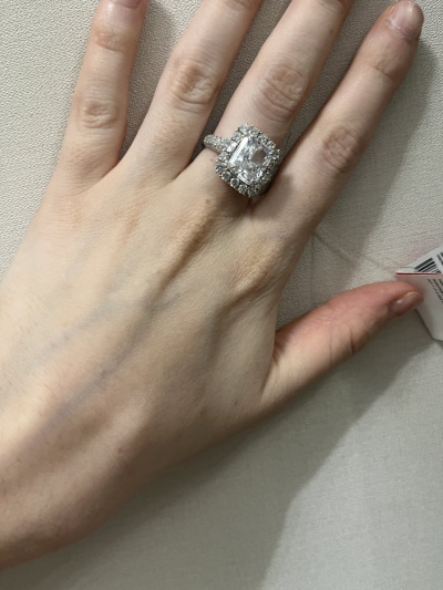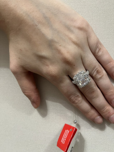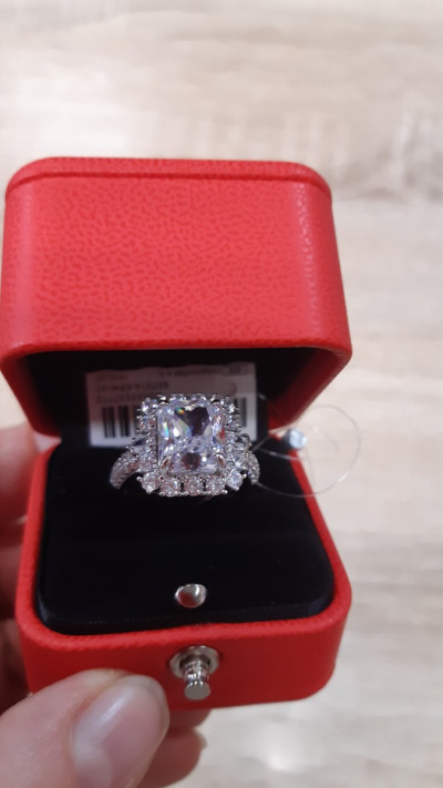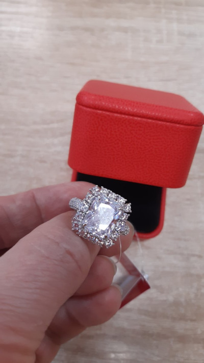 Кольцо покупала комплектом к серьгам, очень красивое, выглядит, как белое золото с бриллиантами.