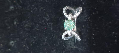 Серебряное кольцо с муассанитом параиба и фианитами